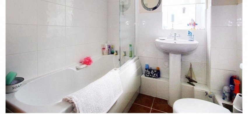 Separate good size bathroom, with shower over bath